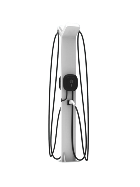 Our package includes TWO AW32 (32a) Level 2 charger and a single-port pedestal mount. Enhanced with an integrated cable management system for a streamlined charging experience, this offering is tailored for superior fleet operations. It merges cutting-edge technology with an effortlessly stylish, standalone design, embodying everyday efficiency. An ideal pick for businesses aiming to elevate their EV charging offerings."